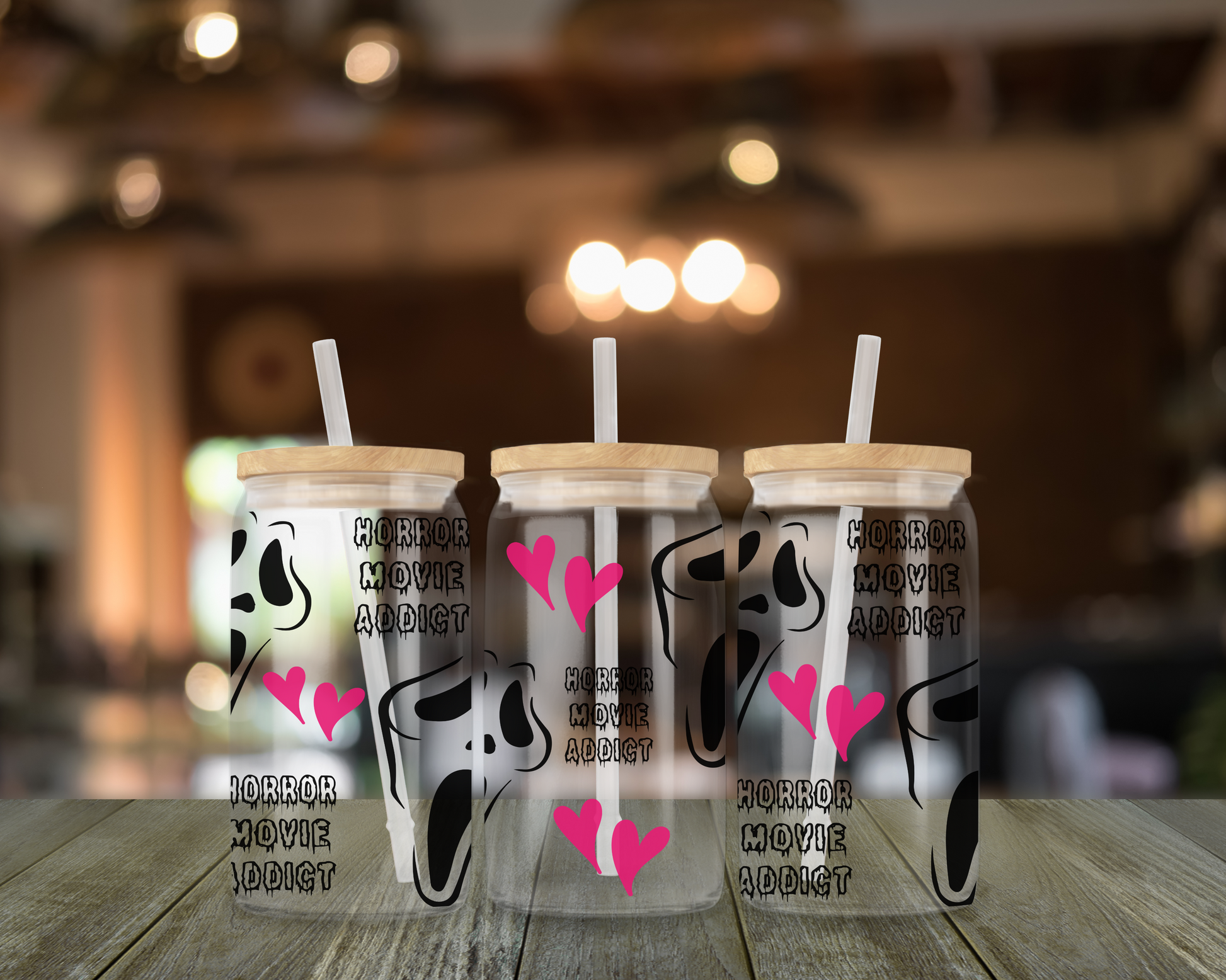 Embrace your love for horror with this 16 oz glass libbey. Fuel your movie marathons with this quirky must-have for any true horror movie addict. Perfect for holding your favorite beverage (or blood) while you scream at the screen. Don't be afraid to show off your obsession with this glass libbey!