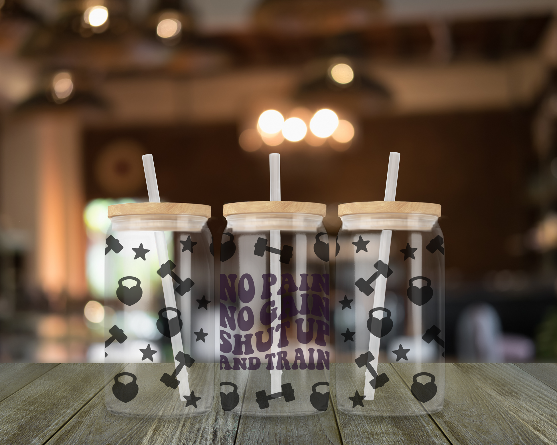 no pain no gain 16 oz glass libbey